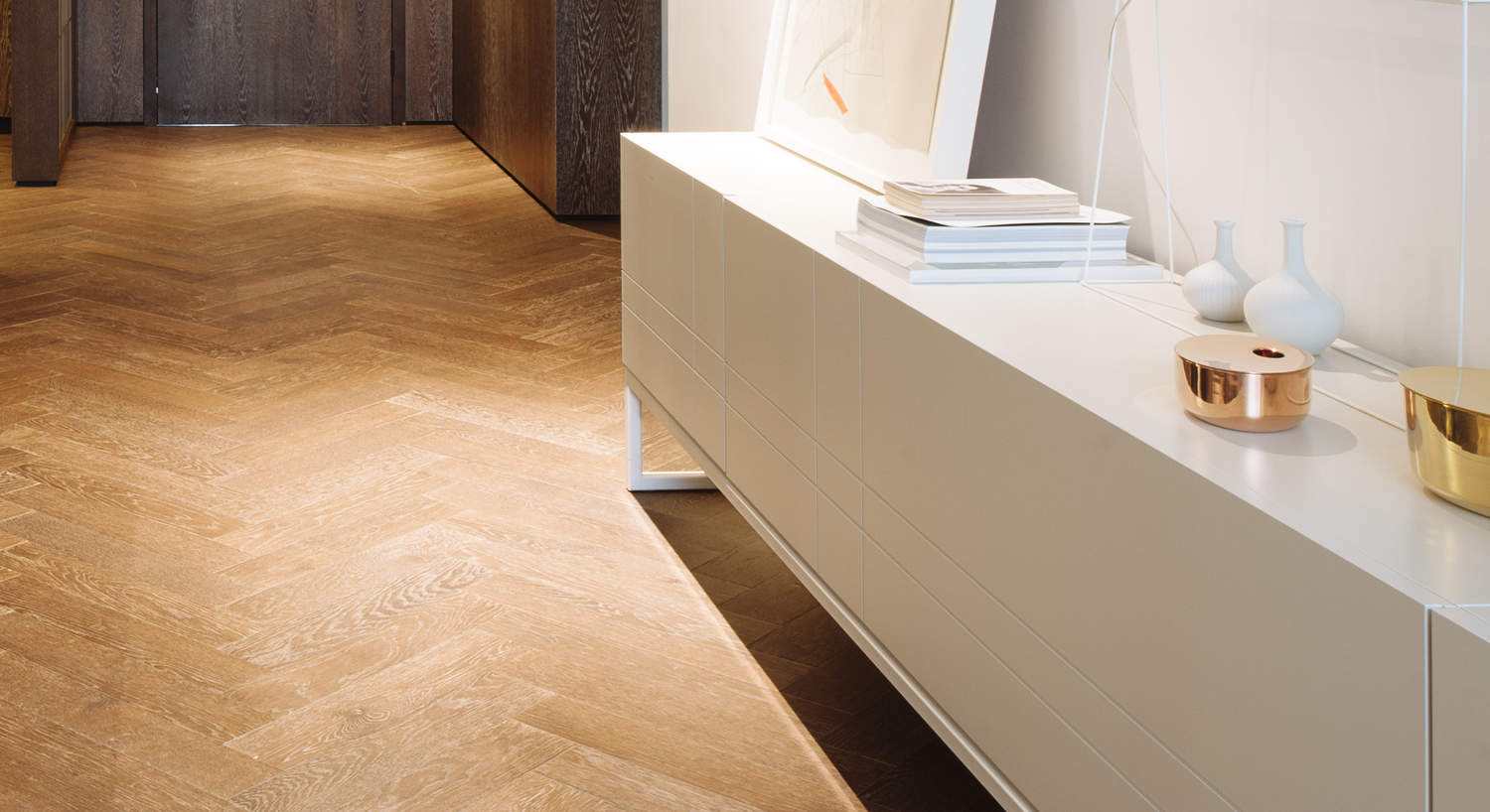 Phase 1 of the Battersea Power Station development, Circus West Village, designed by dRMM and Simpson Haugh & Partners, involves the construction of over 850 apartments integrating retail, leisure and hospitality areas. For the show apartments, designed and finished by Johnson Naylor, pre-finished engineered oak herringbone floors from the Domus Parquet Collection were selected, featuring two specially crafted colours in rich brown and light natural tones.