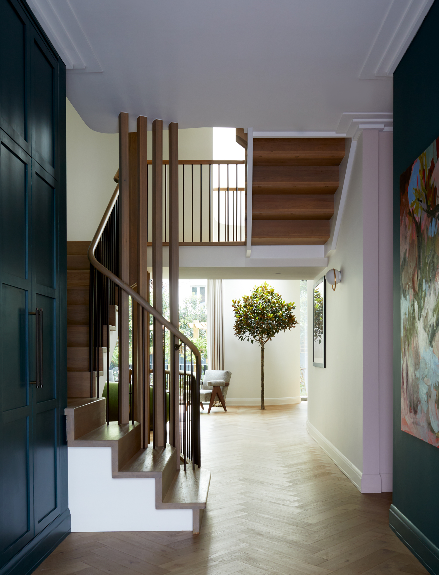 Rusthall Avenue draws much of its inspiration from the surrounding garden, with its natural palette echoed throughout the interior. The colour scheme is anchored in a cohesive palette of greens, pinks and earthy tones, with natural stone, oak, bronze and dark gold metallics introduced to create texture and subtle contrast.
