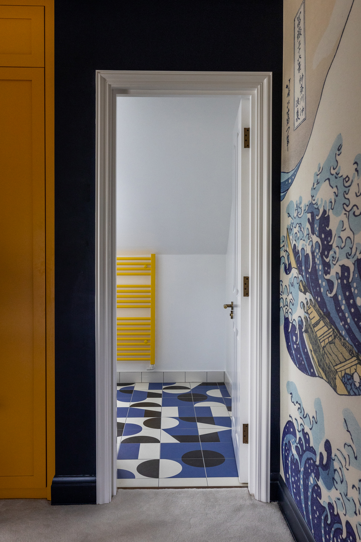 At opposite ends of the top floor are the children's rooms, each with an en-suite. Thoughtfully designed to adapt as the children grow, both feature Puzzle porcelain tiles, chosen for their timeless appeal and refined jubilance.