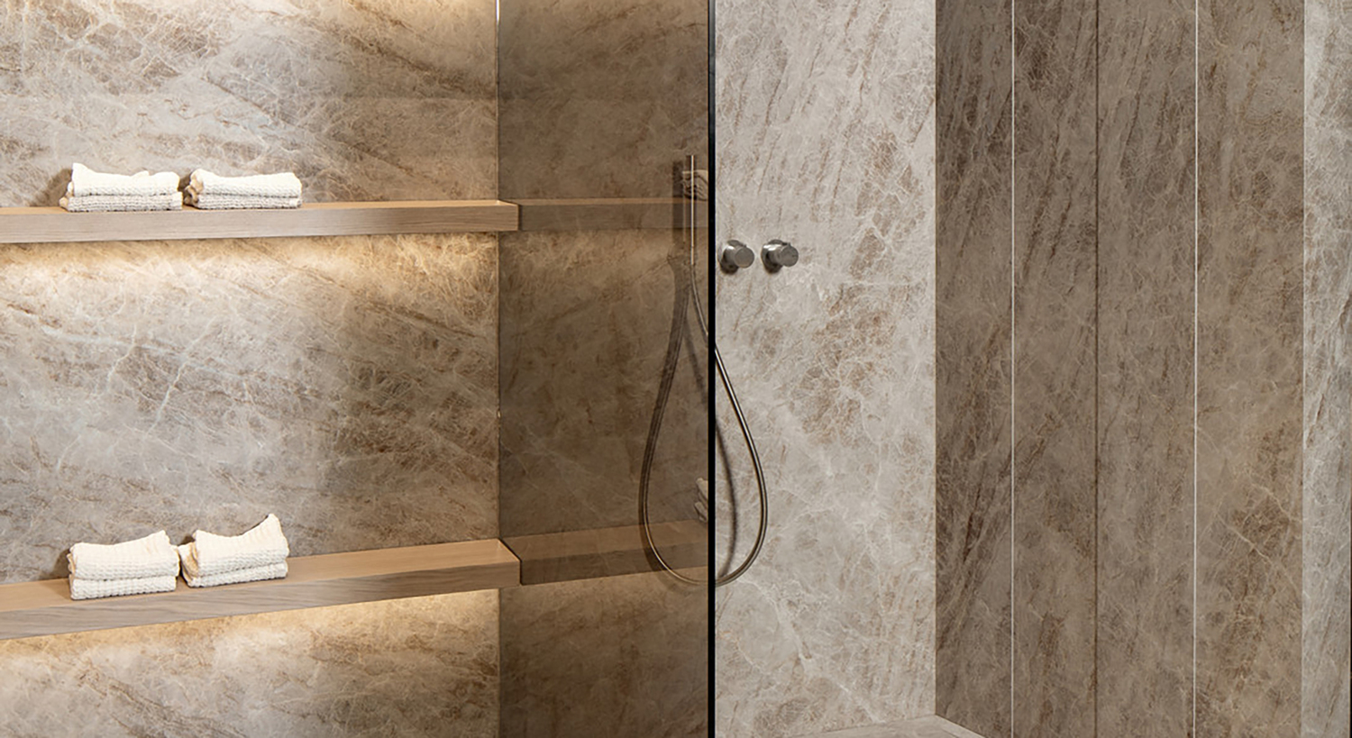 Agra is a marble-effect porcelain inspired by warm amber tones and intricate veining create a luminous, undulating surface rich in natural depth and refined detail. Available in four colour variations with gloss and matt finishes, it brings timeless elegance and striking dimension to any space. Refer to Agra Magnum for 6mm-thick lightweight slab options.