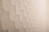 Bera & Beren Wall takes inspiration from Portuguese and Catalan limestone. The range has a refined, minimal character in a timeless stone coloured palette. The natural tones demonstrate a subtle shade variation with meticulous surface detail. The distinct surface relief designs include Dot, with bush hammered textures of natural stone; Saw, with engraved horizontal lines; and Six, with a network of recessed hexagons. View Bera & Beren for wall and floor tiles with mosaic options. Refer to Bera & Beren Slim for 6mm-thick lightweight porcelain slabs for use on walls and floors. Also available in lightweight ceramic slab formats for use on walls only, see Bera & Beren Wall Slim.