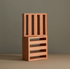 Tally is a range of extruded terracotta bricks that adds predefined groups of lines, allowing for extended arrangements in any configuration. There are two 3D elements to this range—one divided into two gaps by a single line at the centre (Wide), and the other divided into four (Narrow).