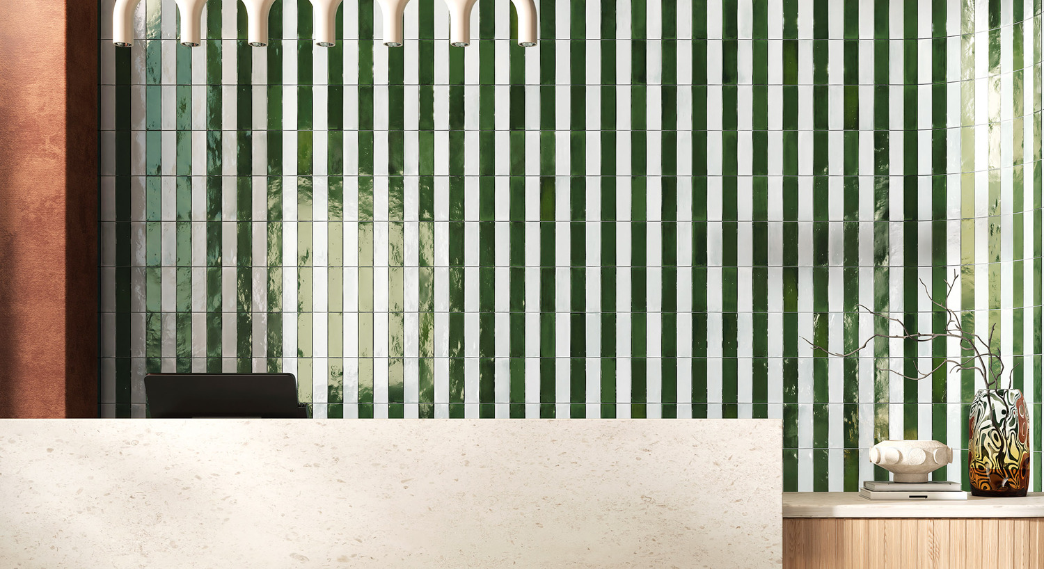 T-Brick & Box is a range of ceramic wall tiles with a diverse colour palette featuring blues, greens, pinks, and greys in warm and cool tones, allowing endless customisation. Experiment with gradient effects by combining different shades to create unique and visually striking designs.